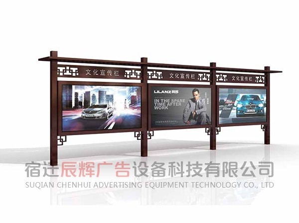 宣傳欄是一種VI應用,是組織或企業單位等進行自我宣傳的有效手段,常被應用于街道,工廠等公共場所;一般采用不銹鋼為框架,鋼化玻璃或者耐力板為面板,鋁合金為頂棚,面板可以打開更換宣傳畫面?,F如今,宣傳欄廣泛應用于學校、小區、會議館、展廳等各個場地。